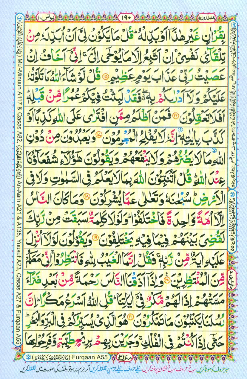 16 Lines Color Coded Al Quran Parah 11 Page 190