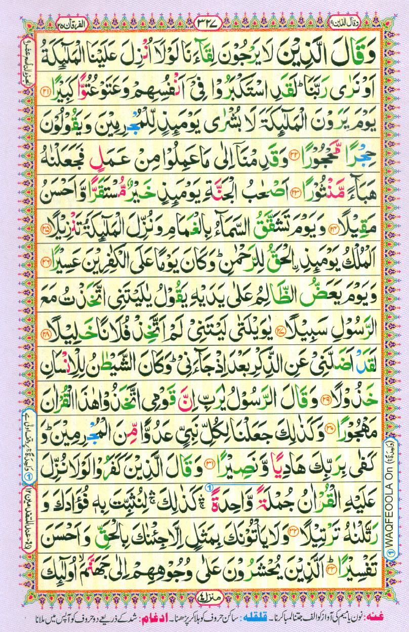 16 Lines Color Coded Al Quran Parah 19 Page 327