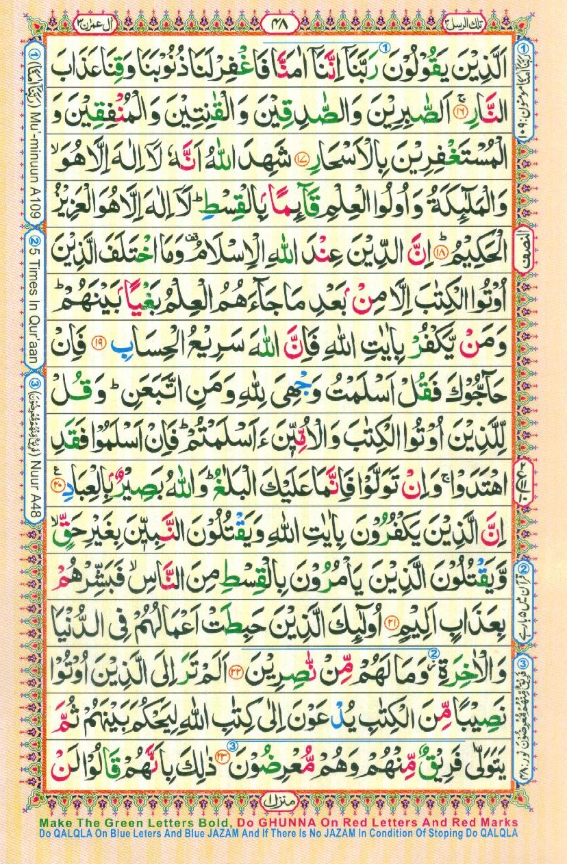 16 Lines Color Coded Al Quran Parah 3 Page 48